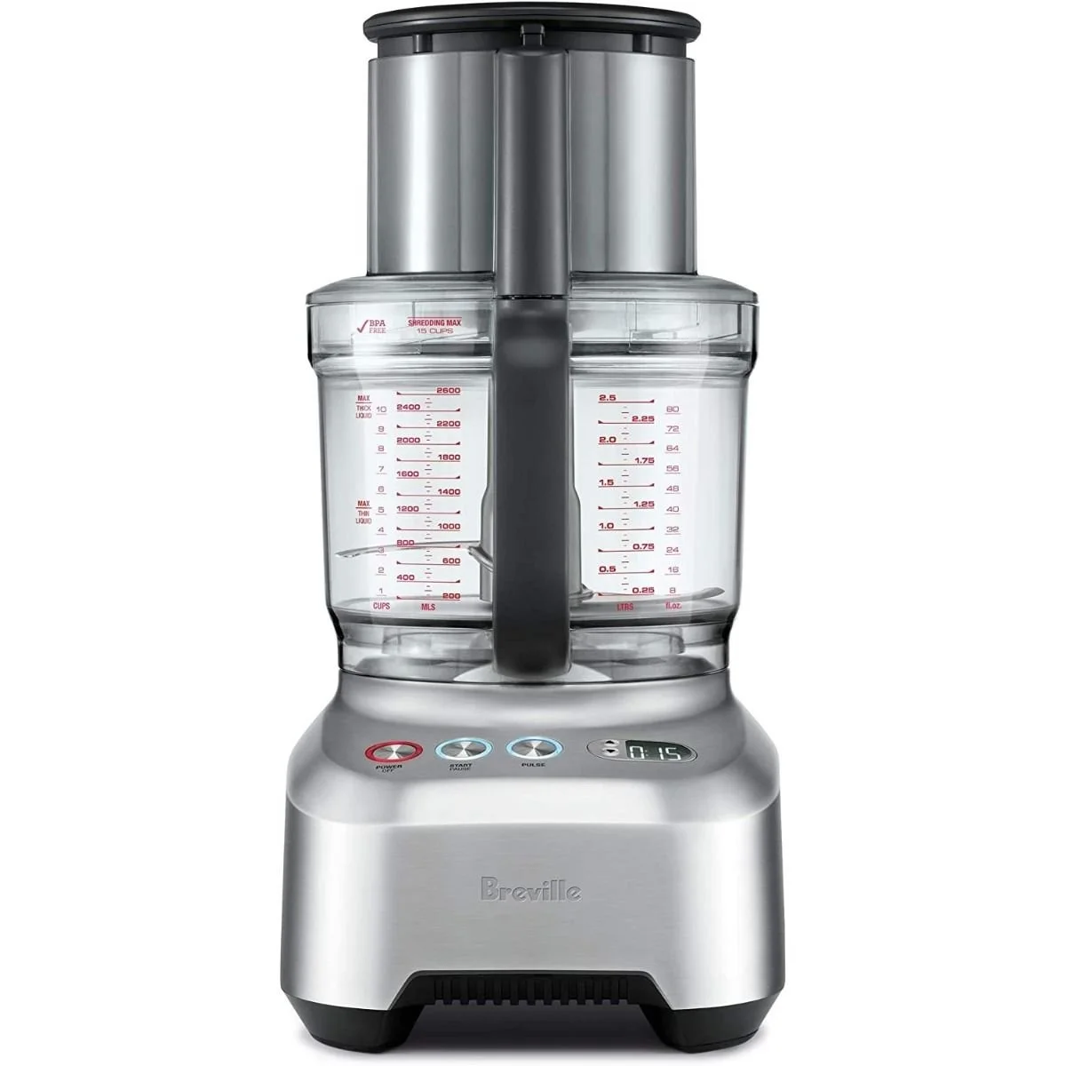 Bring a helping hand into your kitchen that is ready to aid you in your food prep tasks no matter what is on the menu with Breville’s The Sous Chef Peel and Dice Food Processor! Offering the ability to dice, shred, slice, mix, peel, julienne slice, knead dough, and whisk in one machine, this food processor is the choice addition to your kitchen for most of your food prep tasks. The heavy-duty, high-torque motor powers through ingredients with 1200 Watts of power, making easy work of slicing even the toughest foods. Innovative in design, the lid features three feed chute options to suit a variety of shapes and sizes – allowing for quicker and more consistent results. The easy-to-operate button controls allow for continuous processing or pulse, and the LCD timer display counts up and down for precise results between batches. Keeping the attachments and cleaning accessories is made easy by the included storage box, ensuring you are ready for whatever you plan to prepare without taking breaks to search for pieces. Whether you plan on making a homemade pico to pair with tacos, a potato gratin as a side for dinner, or whipped cream to top a strawberry shortcake, a trustworthy sous chef is essential to successfully execute your recipes – choose yours in the Breville The Sous Chef Peel and Dice Food Processor!