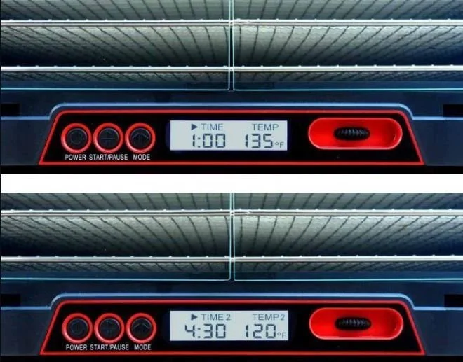 - Dual heating system allows the user to easily program two temperatures and two times for better control of food drying. Each time can be set for up to 99 hours for a total of 198 hours of continuous automated operation