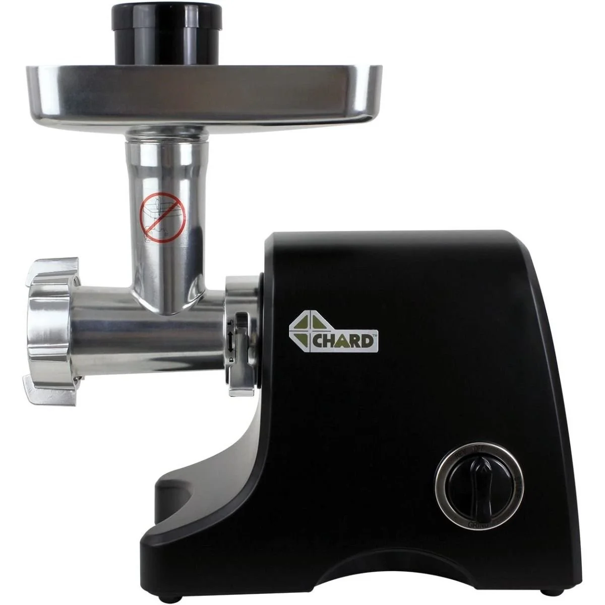 Grind meat for homemade burgers, brats and sausages with the Stainless Steel Electric Grinder from Chard. Constructed from tough alloy steel, this grinder has a powerful 500 watt motor that can accommodate up to 6 pounds of meat per minute. The #12 sized grinding head with oversized hopper and food pusher makes inserting and processing the meat easy and efficient, and to ensure continuous use, the reverse function helps prevent jamming on larger chunks. Choose between the fine and medium sintered steel grinding plates and cast cutting blade. Also included are two sausage stuffing tube with one stuffing plate attachments. Perfect for hunters and homesteaders, the Chard Stainless Steel Electric Grinder will keep your freezer well-stocked with all the ground meat you can eat for years of reliable use!