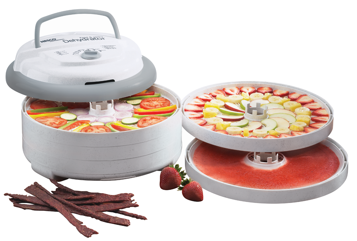 This Snackmaster is one of the newest dehydrators in the Nesco/American Harvest product line. It’s sleek, contemporary design features a top mounted fan, 600 watts of drying power, and generates maximum speed and quality for dehydrating fruits, vegetables, beef jerky, and venison jerky. Helps dry food in hours, not days like ordinary food dehydrators.
